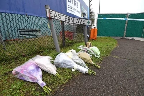 Người dân Anh hôm 25/10 đặt hoa tưởng niệm tại khu công nghiệp Waterglade, nơi xe container chở 39 nạn nhân được phát hiện. Ảnh: Reuters.
