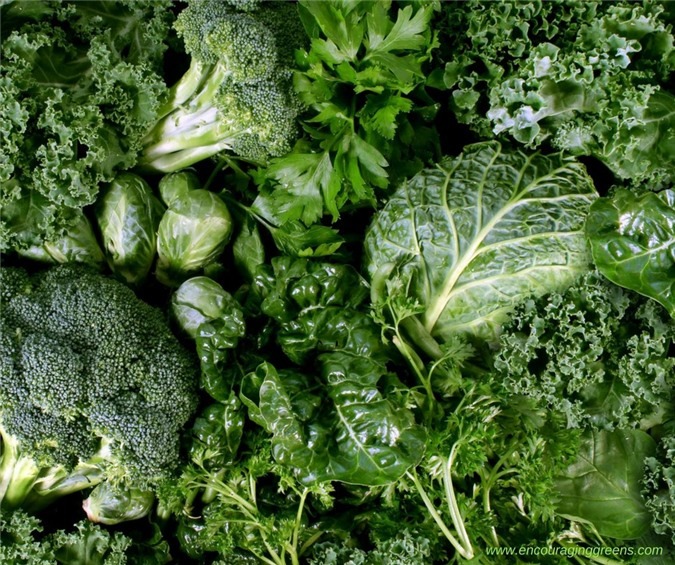 Tất cả các loại rau lá xanh như rau cải xoăn, rau chân vịt, rau cải xoong, ...đều chứa hàm lượng cao các chất dinh dưỡng, các vitamin và khoáng chất quan trọng đối với sức khỏe xương. Ảnh: encouraginggreens.