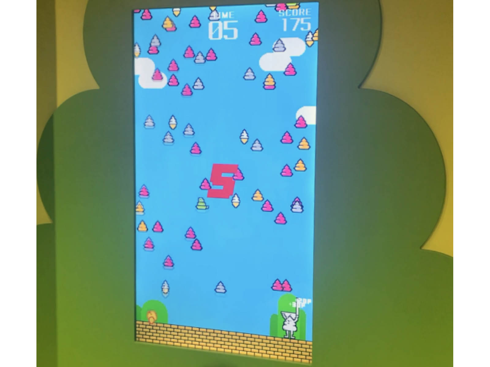 Đây là khu máy chơi game vui nhộn với hình ảnh những cục phân trôi nổi trên màn hình. Để chiến thắng trong trò chơi này bạn phải hứng được đầy các bát phân và không được để chúng rơi ra ngoài.