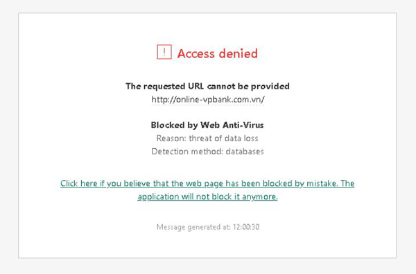 “Nội dung tin nhắn hướng dẫn tôi truy cập vào một website giả mạo có chứa cụm từ VPBank để nhận thưởng. Khi truy cập vào website này, phần mềm Kaspersky đưa ra cảnh báo đường link có chứa virus. Biết đây là thủ đoạn của bọn lừa đảo nên tôi không làm theo.”, anh Minh nói.
