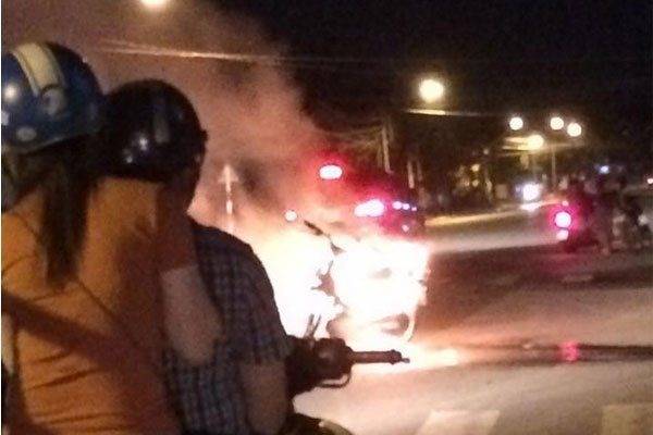 Hiện trường vụ cháy xe do bỏ điện thoại vào cốp được người dân chụp lại
