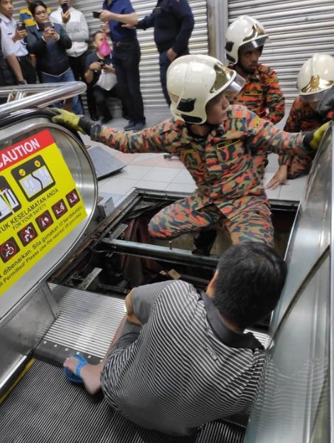 Lúc 10h10 ngày 3/11 (theo giờ địa phương), nhân viên cứu hộ được điều động đến một trung tâm thương mại trên đường Jalan Tuanku Abdul Rahman ở Kuala Lumpur, Malaysia để giải cứu người đàn ông xui xẻo.