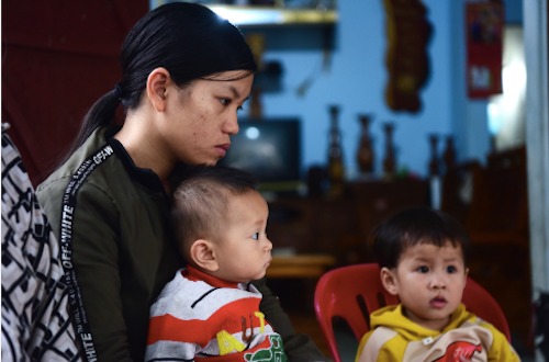 Chị Thái Thị Giang và các con. Ảnh: Giang Huy.
