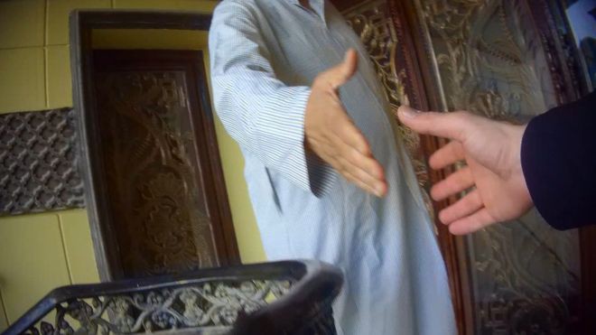 Nhóm phóng viên của BBC tiếp cận với một người đàn ông đang chào bán người giúp việc. Ảnh: BBC.