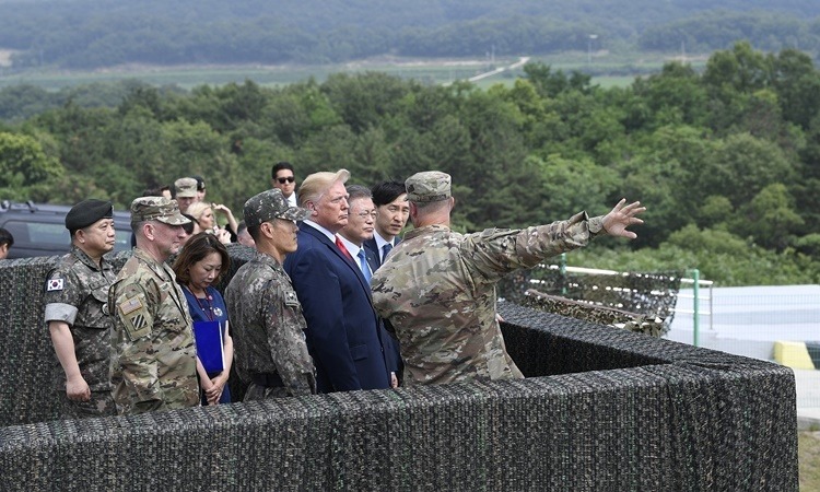 Tổng thống Mỹ Donald Trump thăm Trại Bonifas ở Hàn Quốc hồi tháng 6. Ảnh: AP.