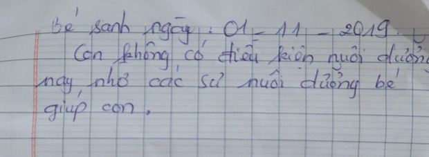 Lá thư được người mẹ để lại bên cạnh em bé sơ sinh 1 tuần tuổi.