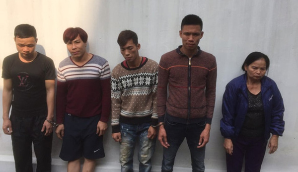 Bà Tình và 4 đồng phạm bị bắt để điều tra hành vi trộm cắp, tiêu thụ chó. Ảnh: Lam Sơn.