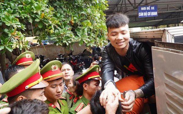 Khi được dẫn giải tới trước bục khai báo, Khá "Bảnh" cùng các đồng phạm được lực lượng chức năng tháo khóa số 8.