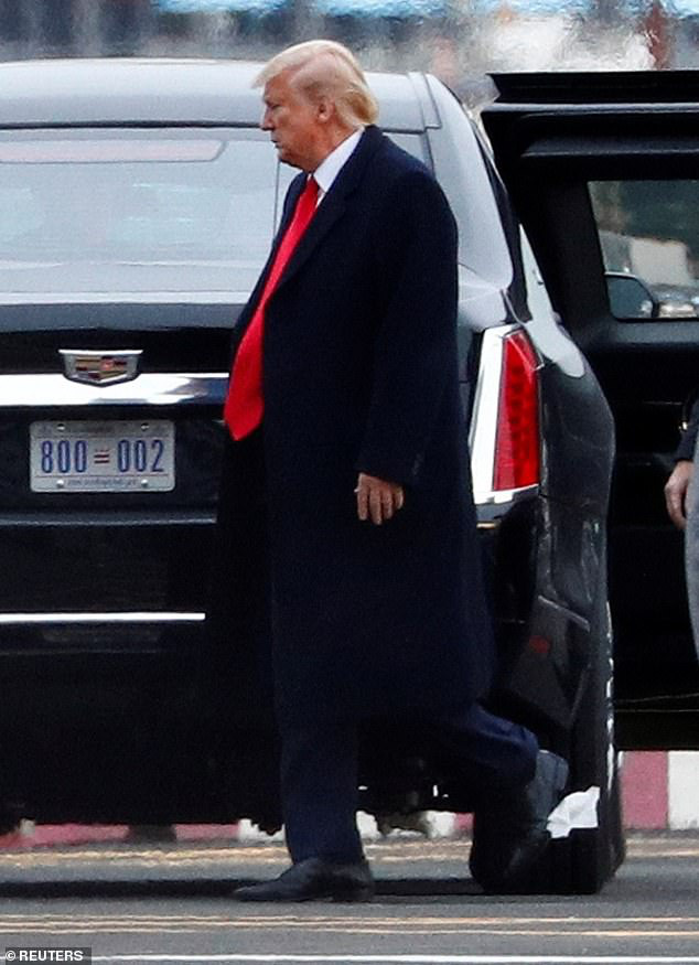 Sau khi có bài phát biểu tại Câu lạc bộ Kinh tế New York vào ngày 12-11, Tổng thống Donald Trump rời đi bằng chiếc xe limousine để lên trực thăng Marine One đến sân bay quốc tế John F. Kennedy. Một mảnh giấy vệ sinh dính vào giày của ông và đung đưa trong cơn gió lớn.