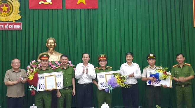 Đại diện UBND TP Hồ Chí Minh kịp thời động viên khen thưởng cho các đơn vị phá án.