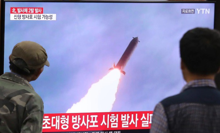 Bản tin truyền h́nh về vụ phóng tên lửa của Triều Tiên vào tháng trước. Ảnh: Reuters.