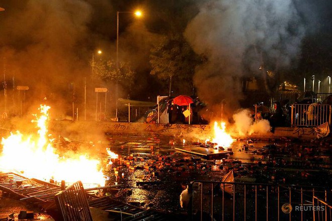 Người biểu tình đụng độ với cảnh sát Hong Kong bên ngoài Đại học Bách khoa hôm 17/11. Ảnh: Reuters.