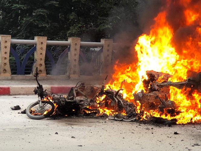 Các phương tiện trong vụ tai nạn bốc cháy dữ dội.