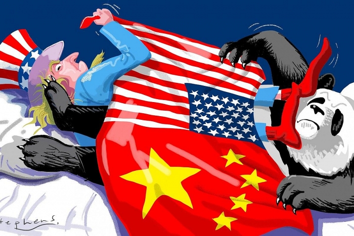 Xung khắc thương mại Mỹ - Trung Quốc tuy không bao giờ chấm dứt nhưng cũng không lại leo thang căng thẳng và gay cấn đến vô hạn. Biếm hoạ của Craig Stephens (SCMP).