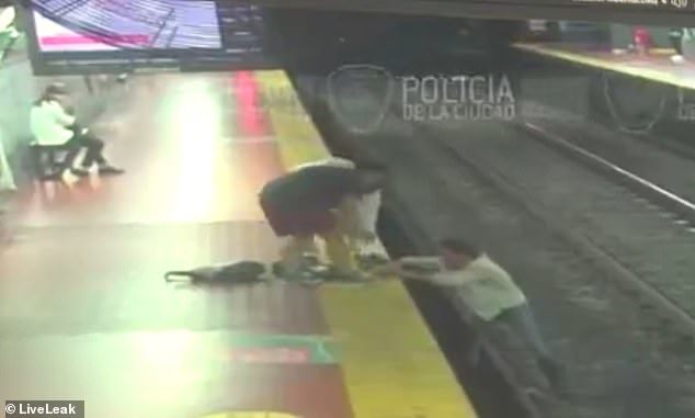 Đối tượng tự gây tai nạn cho mình, năm nay 49 tuổi, đã được hai người gần đó giúp bước lên bục. Hình ảnh clip ngay sau đó cho thấy một đoàn tàu tiến vào nhà ga.