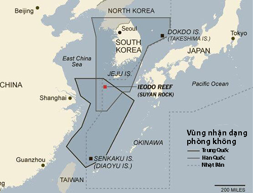 Vị trí đá ngầm Ieodo/Tô Nham và vùng nhận dạng phòng không của các nước Đông Á. Đồ họa: East Asia Intel.