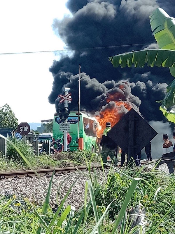 Xe khách giường nằm 45 chỗ đang chở hành khách thì bất ngờ khói bốc lên từ phía đầu xe. Tài xế đã nhanh chóng sơ tán hành khách xuống xe. Lực lượng chức năng nhanh chóng có mặt tại hiện trường dập tắt đám cháy.