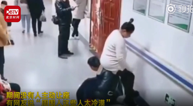 Theo đoạn ghi hình của camera giám sát tại một bệnh viện, hai nhân vật chính phải đứng ngoài phòng khám cùng rất nhiều người khác để chờ tới lượt kiểm tra. Người vợ mang bầu nên đi đứng khá khó khăn, phải vịn tay vào song sắt trên tường. Thấy vậy, anh chồng ngọt ngào liền ngồi bệt xuống đất, đưa lưng ra để làm ghế cho nửa kia.