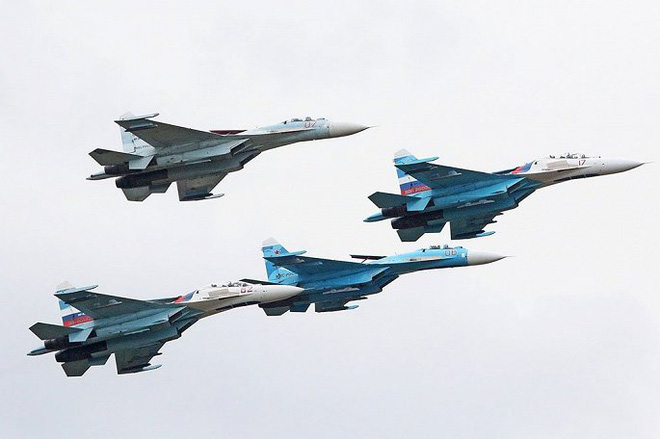 Máy bay chiến đấu siêu thanh Su-27 của Không quân Nga. (Ảnh: RG)