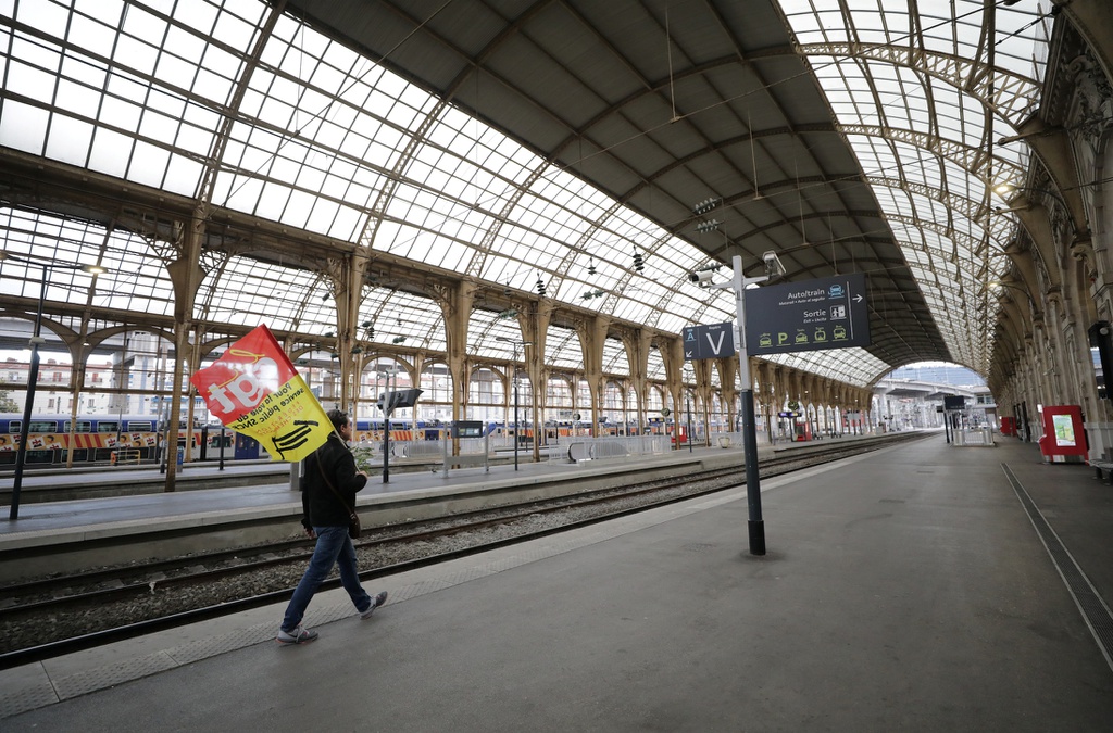 Khả năng di chuyển giữa các thành phố của Pháp ngày hôm nay bị hạn chế nghiêm trọng. 9 trên 10 tàu cao tốc và 7 trong số 10 tàu tốc hành dừng hoạt động. Các ga xe lửa trên khắp đất nước gần như không một bóng người. Nhiều trường học vẫn đóng cửa. Ảnh: Reuters.