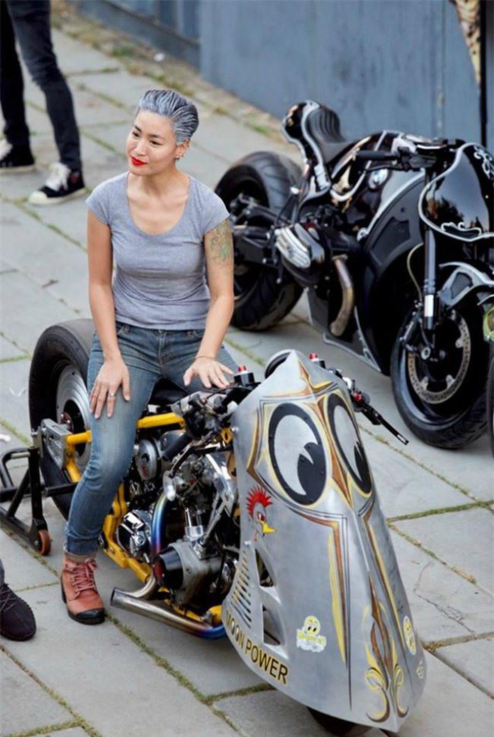 Chiếc môtô BMW khác với khối động cơ hàng khủng, trong khi thân xe lại mảnh khảnh theo phong cách cafe racer.