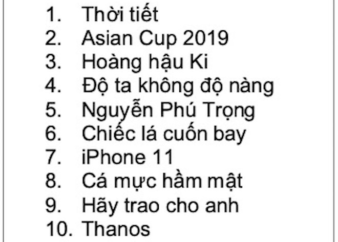 Top 10 từ khóa có xu hướng tìm kiếm nhiều nhất trong năm 2019.