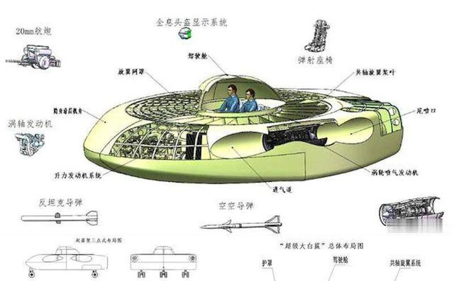 Phương tiện bay kì lạ có tên "Cá mập Trắng Siêu Vĩ đại". Nhiều người đã liên tưởng hình dáng của máy bay này với đĩa bay UFO của người ngoài hành tinh và thậm chí là robot hút bụi tự động. Tuy nhiên, chưa ai biết liệu phương tiện này có bay được không hay chỉ là một sản phẩm trưng bày.