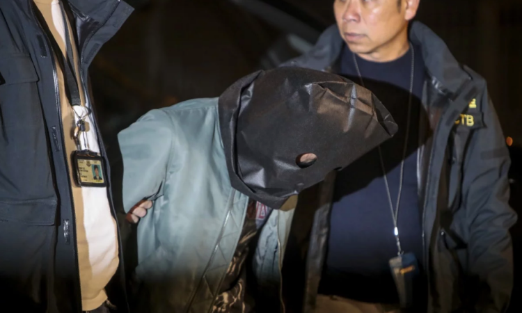 Một nghi phạm bị bắt tại thị trấn Tuen Mun hôm qua. Ảnh: SCMP.