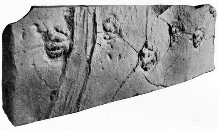 Vệt rãnh do đá tự di chuyển để lại giữa các dấu chân khủng long. Ảnh: Sun.