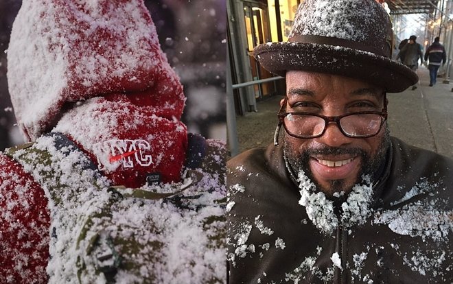 Tuyết phủ trên áo những người đi đường.