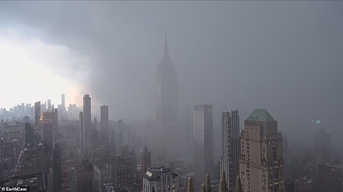 Dịch vụ thời tiết quốc gia cảnh báo tuyết rơi ở thành phố New York. Video quay chậm cho thấy cơn gió tuyết tràn về nơi đây, khiến người dân và du khách chìm đắm trong làn tuyết lạnh giá. Tuy nhiên, hiện tượng này chỉ diễn ra trong thời gian ngắn.