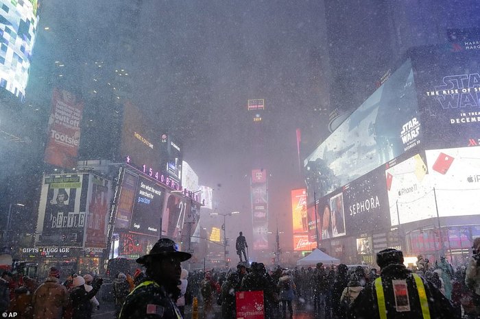 Một trận gió tuyết dữ dội tràn về thành phố New York trong chiều 18/12, gây ảnh hưởng tới hàng triệu người dân tan sở gặp vất vả di chuyển giao thông, và du khách cũng chìm đắm trong làn tuyết lạnh giá trong điều kiện thời tiết như vậy.
