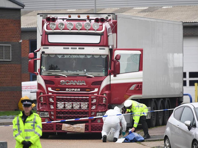 Cảnh sát Anh hôm 23/10 tìm thấy 39 thi thể trong thùng container tại khu công nghiệp Grays, hạt Essex, đông bắc thủ đô London. Các nạn nhân sau đó được xác định đều là công dân Việt Nam nhập cư trái phép vào Anh bằng container trên phà xuất phát từ Bỉ. Cuối tháng 11, Anh và Việt Nam đã phối hợp đưa toàn bộ thi thể, tro cốt của những người này về nước và bàn giao cho các gia đình. Anh đã bắt 4 nghi phạm, một trong số đó bị truy tố tội ngộ sát, tham gia âm mưu buôn người và hỗ trợ nhập cư bất hợp pháp. Việt Nam cũng bắt 11 nghi phạm liên quan đến đường dây môi giới đưa lao động sang Anh trái phép.