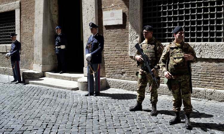 Cảnh sát và binh lính đứng gác bên ngoài trụ sở cơ quan chống mafia tại thủ đô Rome, Italy. Ảnh: AFP.
