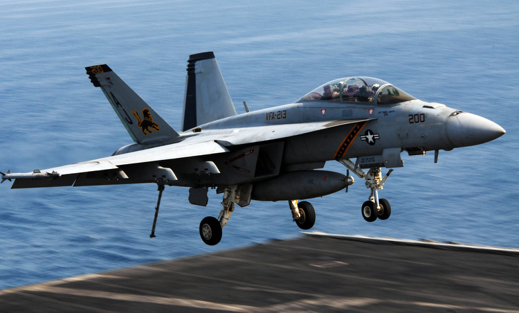 Tiêm kích thuộc phi đoàn VFA-213 đáp xuống tàu sân bay ở vịnh Arab năm 2014. Ảnh: US Navy.