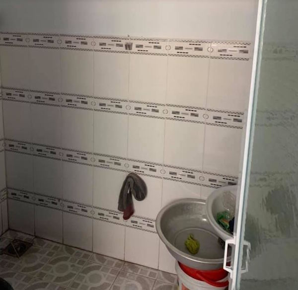 Khu vực cửa ra vào chỉ để vừa 1 chiếc xe máy cộng thêm một người đứng cạnh thôi đã thấy chật chội.