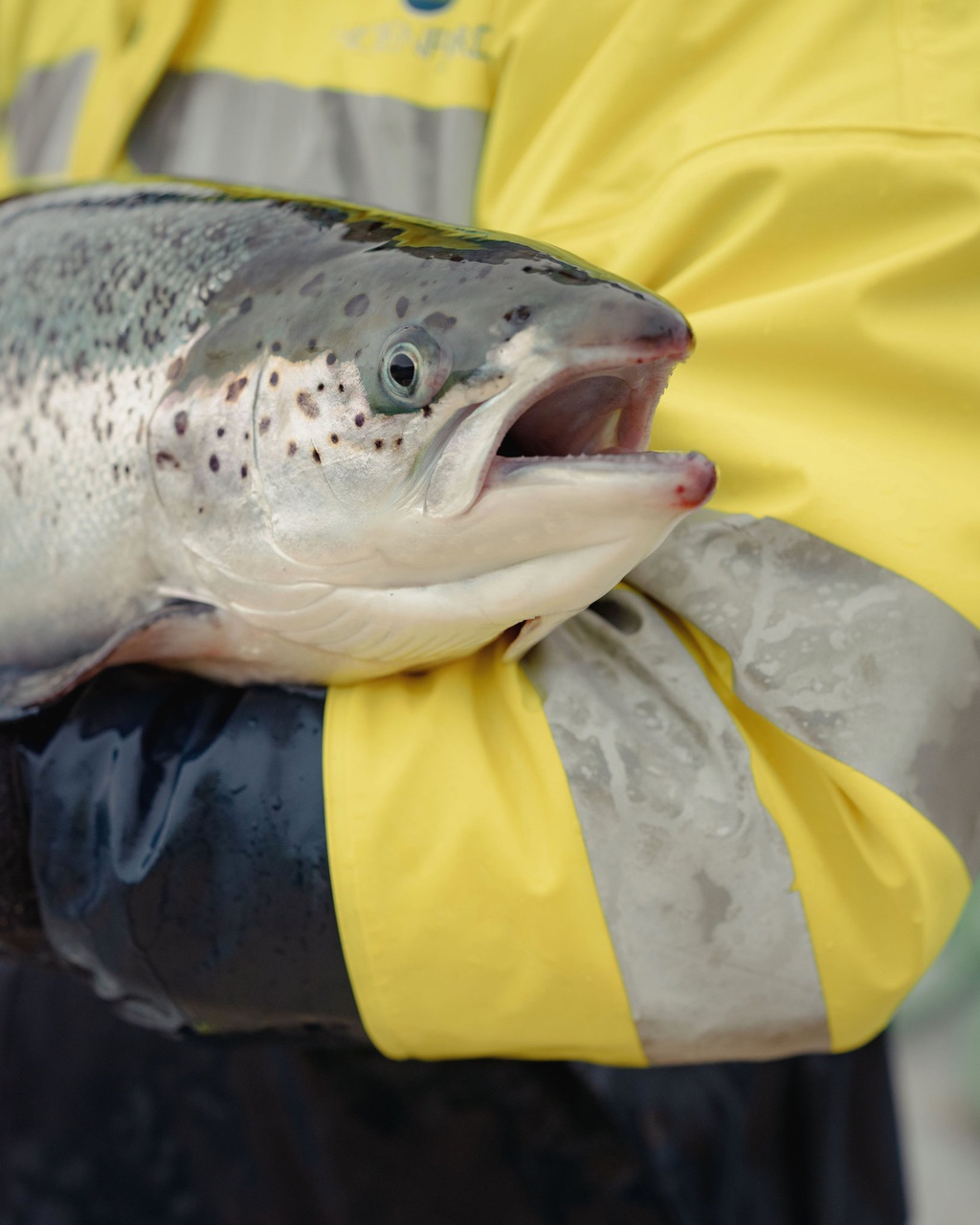Một con cá hồi vừa được bắt ra khỏi lưới ở Quần đảo Faroe. Ảnh: New York Times