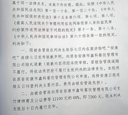Tòa án quận Hán Bình đã thụ lý và có quyết đinh trong phiên tòa sơ thẩm. Nội dung bài đăng của anh Quan là thiếu cơ sở thực tế và vượt quá quyền tự do ngôn luận. Việc đăng bài đã gây tổn hại đến uy tín của nhà hàng.