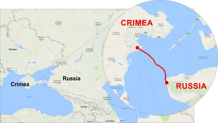 Vị trí cầu vượt eo biển Kerch. Đồ họa: Russia Briefing.