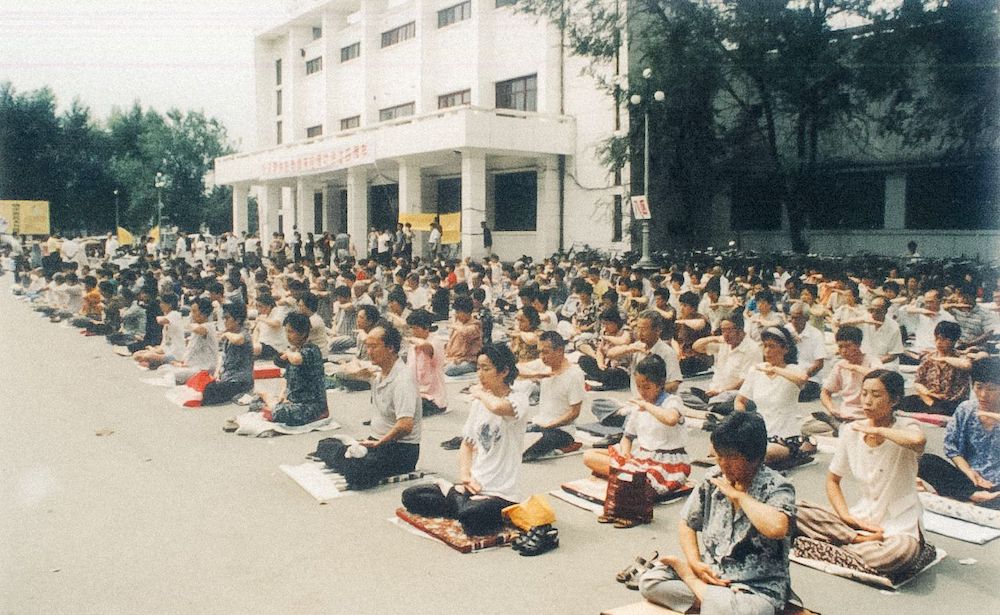 Người tập Pháp Luân Công ngồi thiền ở thành phố Cáp Nhĩ Tân, tỉnh Hắc Long Giang, Trung Quốc (trước năm 1999) (Ảnh: minghui.org)