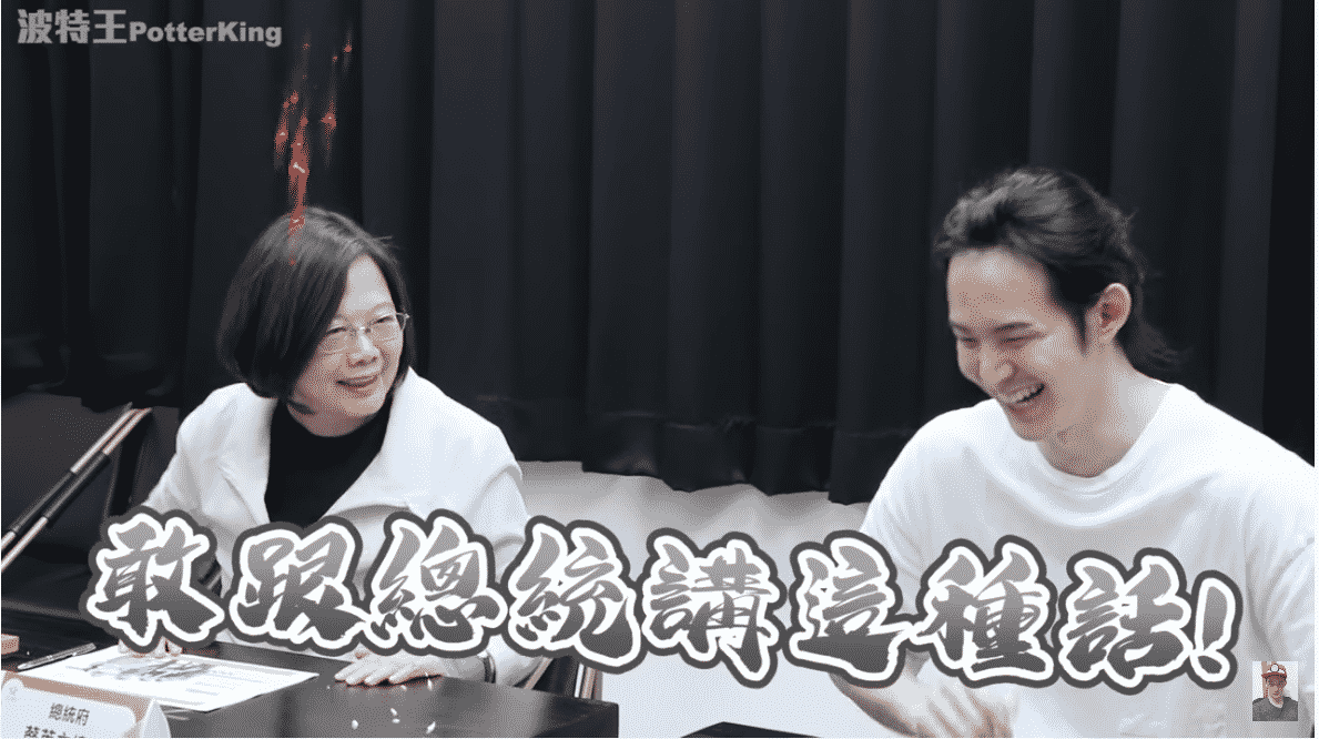 Potter King (phải) nổi tiếng trên internet đã hợp tác sản xuất video với Tổng thống Thái Anh Văn (trái), chỉ trong hai ngày đã thu hút 6 triệu lượt xem (Ảnh chụp màn hình video trực tuyến).