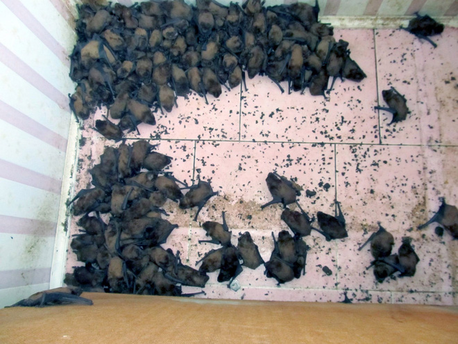 Hàng nghìn con dơi lúc nhúc trong mọi ngóc ngách của ban công, thậm chí không thèm bay đi khi có người đến bắt.