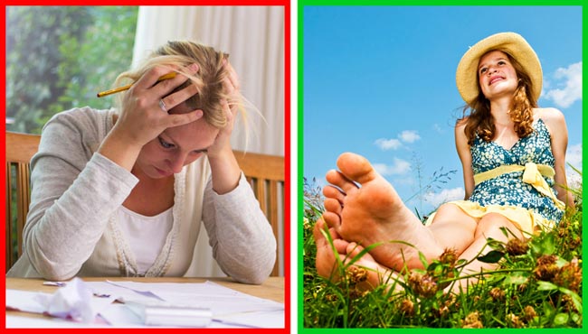 Một nghiên cứu đã chứng minh rằng đi chân đất có thể làm giảm căng thẳng. Tất cả những người tham gia nghiên cứu đã có kết quả mức độ căng thẳng giảm rất nhiều hoặc biến mất hoàn toàn khi họ tăng thời gian đi chân đất.