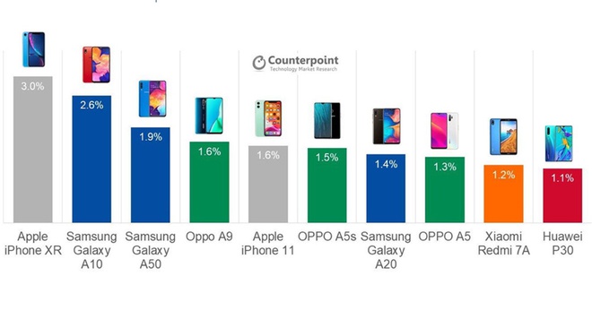 iPhone XR là model bán chạy nhất toàn cầu trong quý III/2019. Ảnh: Counterpoint Research.
