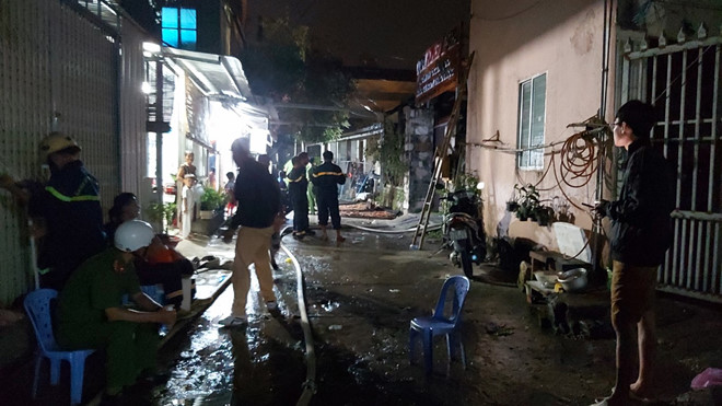 Sau khi phát hiện cháy, nhiều người dân sống trong khu nhà trọ kế bên đă hốt hoảng tháo chạy.