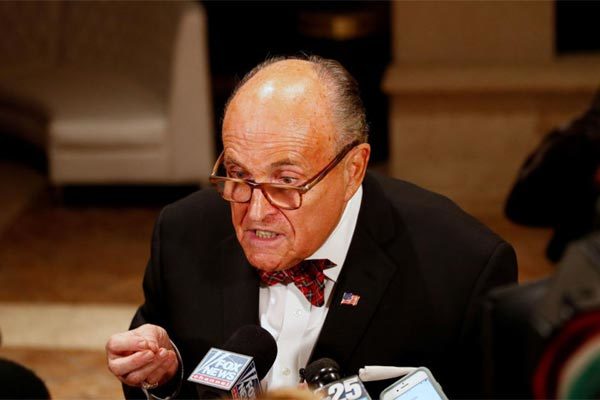 Luật sư Giuliani trả lời phỏng vấn báo chí. Ảnh: Reuters