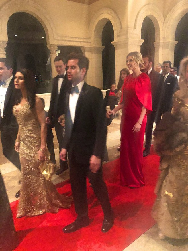 Lara Trump, vợ của ông Eric Trump (con trai Tổng thống Trump), khoe với báo Daily Mail chiếc váy màu xanh nhạt giống như thiên nga của cô là thiết kế của Oscar Lopez. Ivanka Trump mặc váy satin màu đỏ, nắm tay con gái Arabella và sánh bước cùng người chồng Jared Kushner.