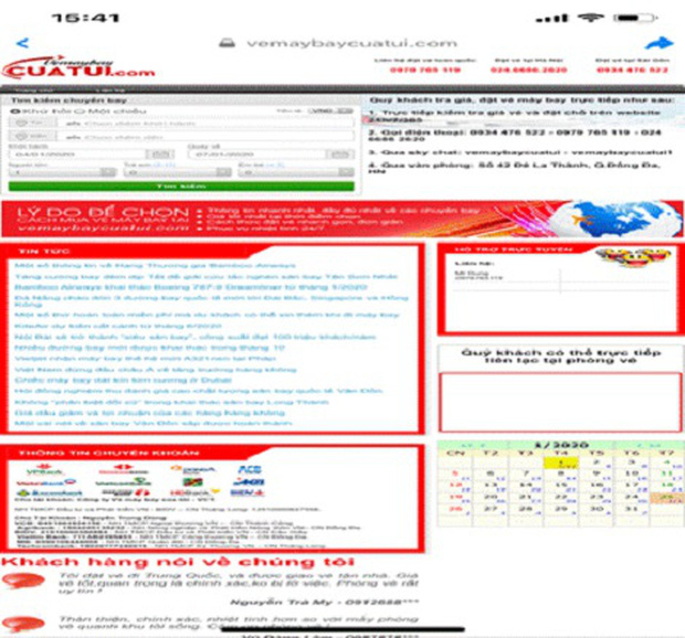 Năm được tâm lý và nhu cầu đi lại rất cao vào dịp lễ tết nên nhiều đối tượng xấu thực hiện hành vi lừa đảo bán vé máy bay giá rẻ. Nhiều khách hàng đã phải ôm hận vì trò lừa này của bọn chúng. Dưới đây là những thông tin chi tiết. Đầu tháng 11-2019, chị N.H (Hai Bà Trưng-Hà Nội) quyết định đưa cả nhà đi Phú Quốc nghỉ vào dịp Tết Nguyên đán 2020. Nghĩ là làm, chị liền lên mạng đặt vé máy bay. Sau khi dạo một vòng qua các trang web bán vé, đọc nhận xét của khách hàng để lại, chị nhận thấy trang web vemaybaycuatui.com có phần tin tưởng.