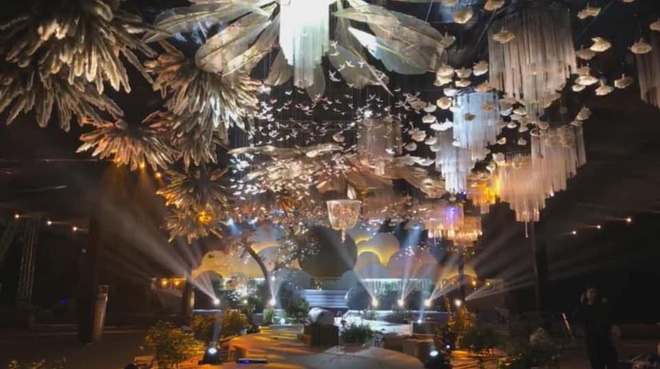 Không gian tiệc cưới sang trọng khiến ai nấy đều chú ý, không ngớt lời bàn ra tán vào, nhất là khi cô dâu, chú rể được đồn đoán là của đại gia Quảng Ninh.Bên cạnh đó, theo như đồn đoán trên mạng xã hội, chi phí cho rạp cưới "khủng" lên tới 2,5 tỷ đồng. Xung quanh rạp cưới đuowcj trang trí bằng hoa tươi, và các chùm đèn led rực rỡ.