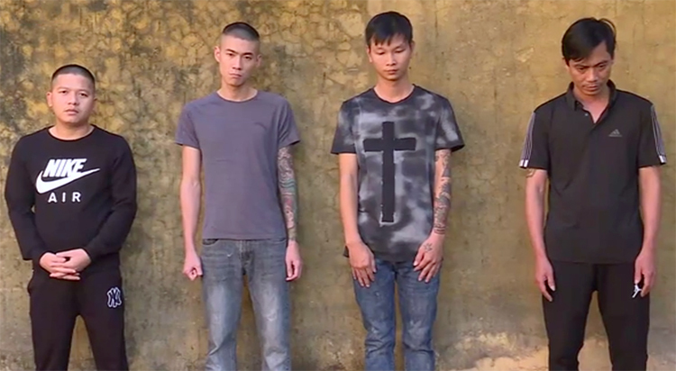 Nghi can Hùng (ngoài cùng bên trái) cùng ba đồng phạm đang bị tạm giam. Ảnh: C.A